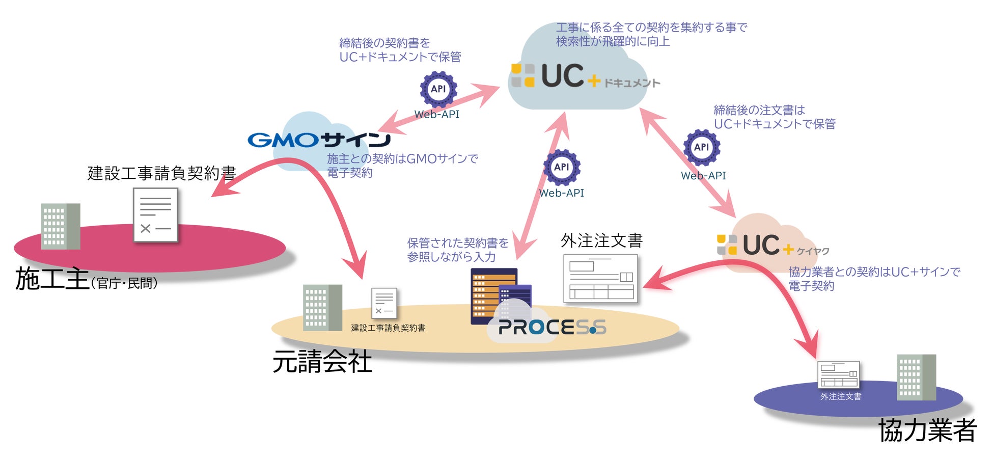 GMOグローバルサイン・ホールディングス株式会社(代表取締役社⻑:⻘⼭ 満 以下、GMOグローバルサイン・HD)は、株式会社内田洋行ITソリューションズ(代表取締役社長:新家 俊英 以下、内田洋行ITソリューションズ)と、2025年2月3日より、建設業界でのDX推進に向けた協業に合意し、両社が提供するサービスを連携することをお知らせいたします。これにより、内田洋行ITソリューションズが提供する「PROCES.S」及び「UC+ドキュメント」と、GMOグローバルサイン・HDが提供する電子契約サービス「電子印鑑GMOサイン」との連携を開始いたします。