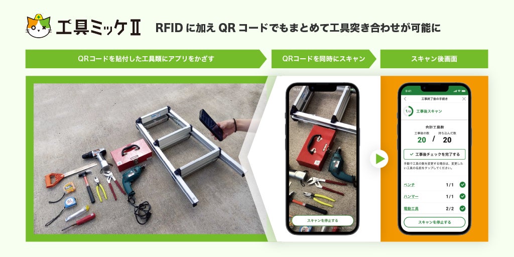 東急建設とアイリッジ、まとめてQRスキャンが可能な工具管理DX「工具ミッケⅡ」を提供開始