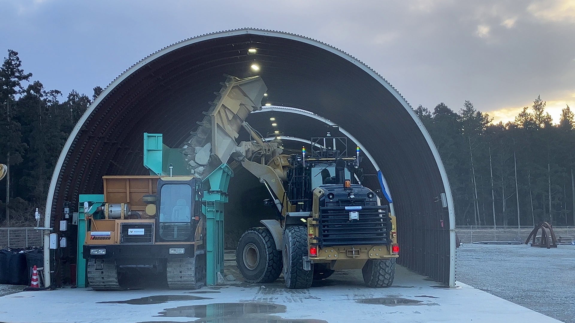 位置データは、トンネル切羽で掘削作業を行っている⼈・重機の位置や姿勢、稼働状態などが含まれます。専用クラウドからリアルタイムに転送されるROS※2データをUnityでデータ変換処理し、3Dモデル化した重機本体およびパーツに反映することで、移動・回転などの動きを再現しました。仮想空間内の重機はトンネル仕様のホイールローダー(サイドダンプバケット仕様)です。図面および点群データ※3を元に3Dモデル化しました。
