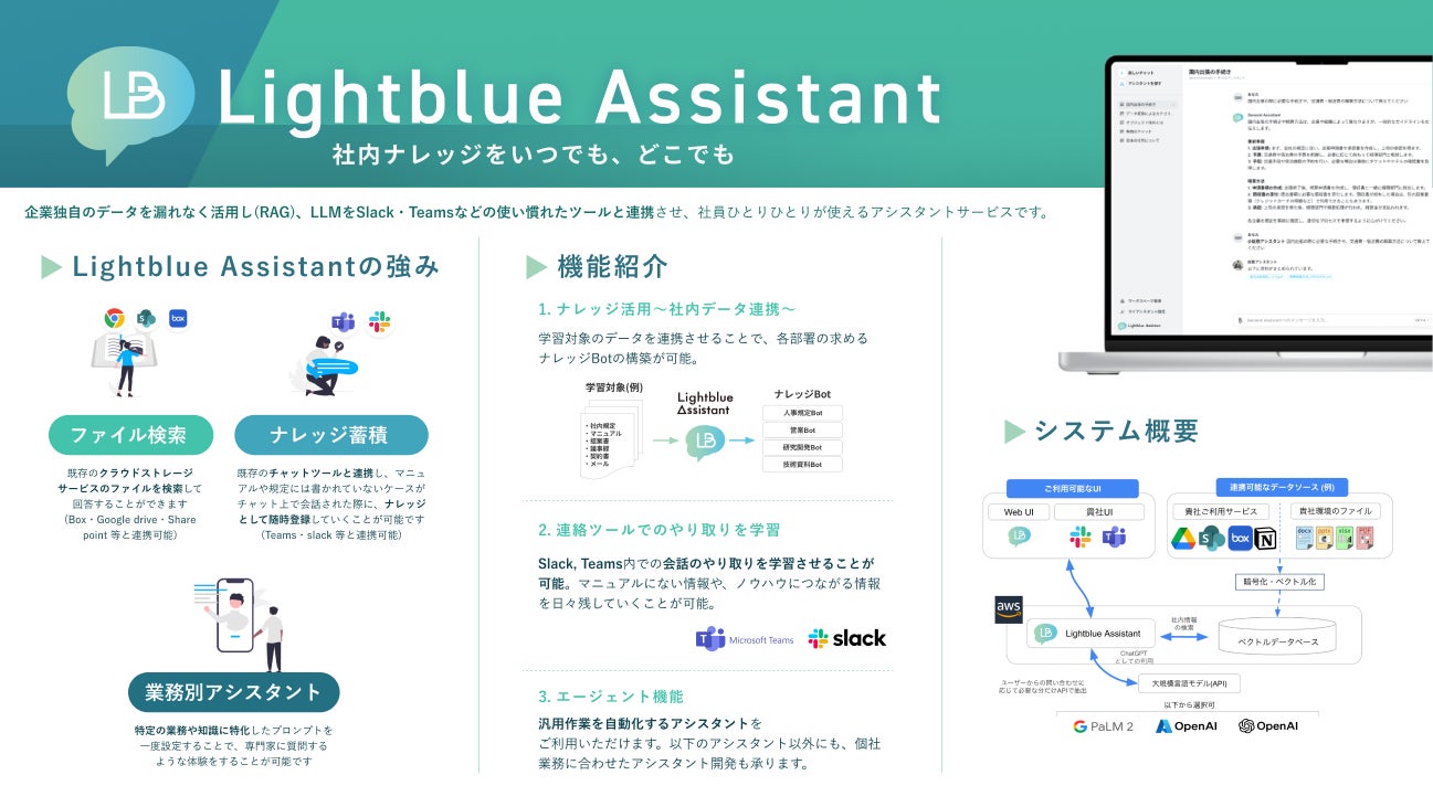 ・SlackやTeamsにて利用できる法人向けAIアシスタントサービス「Lightblue Assistant」