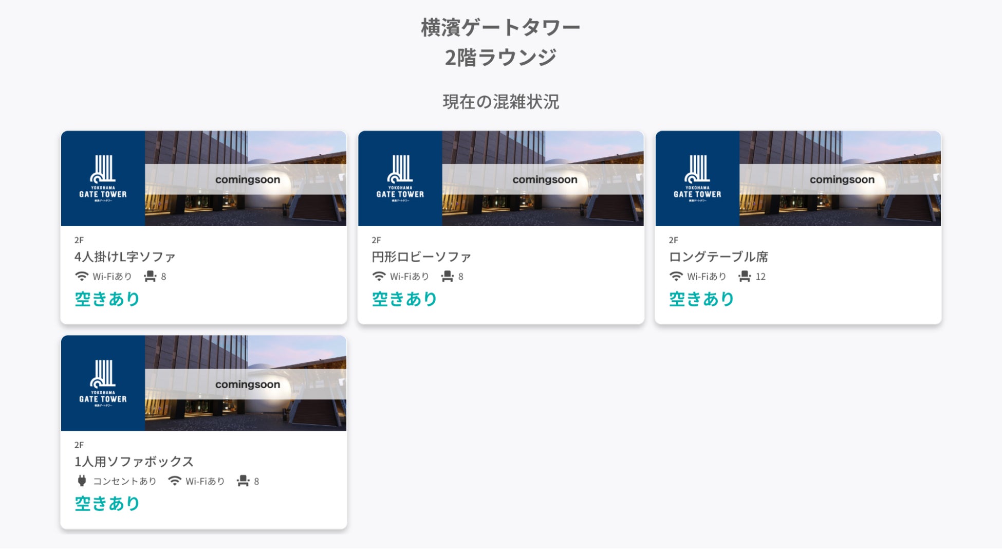 AI×IoTを活用してあらゆる混雑情報を配信・抑制するスタートアップ、株式会社バカン(東京都千代田区、代表取締役:河野剛進、以下「バカン」)は、商業複合型オフィスビル「横濱ゲートタワー」(神奈川県横浜市)に、混雑抑制・管理プラットフォーム「VACAN」を提供します。今回の導入によって施設内の休息スペースやラウンジの空き状況の可視化や、ラウンジ内の半個室ブースの予約といった機能を提供します。それらの機能を活用することで、施設内の混雑を抑制し利用者の満足度向上を実現します。また取得した混雑データを活用することで、最適な椅子のレイアウト検討といった活用も期待できます。