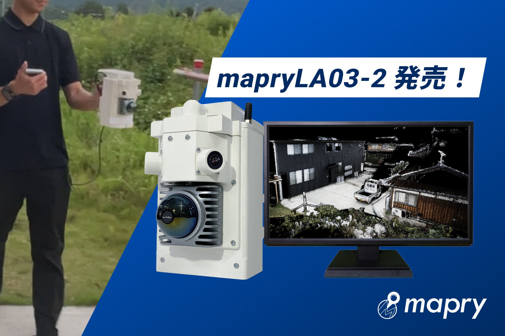 株式会社マプリィ(本社:兵庫県丹波市、代表取締役:山口 圭司)は、2025年7月7日(月)、軽量・高精度の手持ち型LiDAR「LA03-2」を発売いたします。