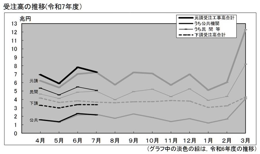 国土交通省リリース,建設工事受注動態統計調査報告(令和 7 年 7 月分)について,https://www.mlit.go.jp/report/press/content/kakuho2507.pdf