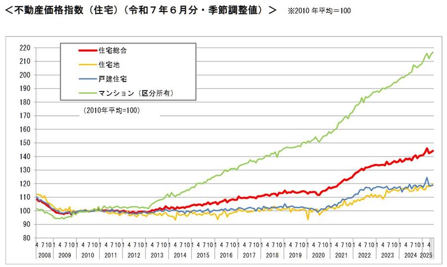 国土交通省が令和7年6月・第2四半期の不動産価格指数を公表、全国的に上昇傾向