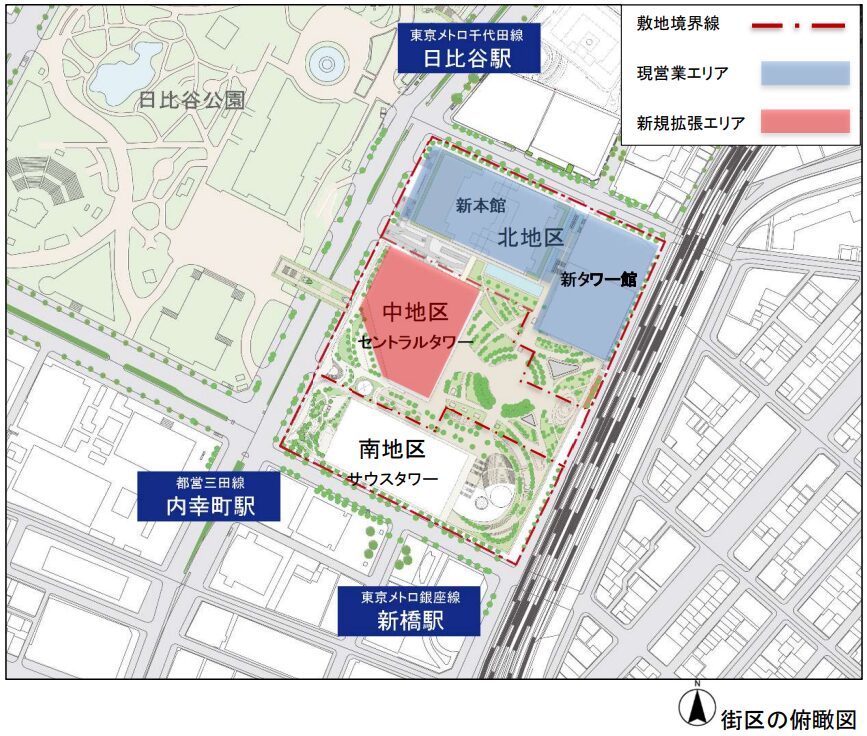 ここからは、「帝国ホテル東京 新本館」の建て替えに伴う周辺エリアの再開発と、営業エリアの拡張について見ていきましょう。