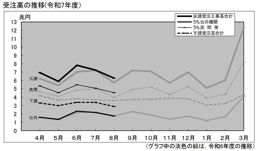 国土交通省リリース,建設工事受注動態統計調査報告(令和 7 年 8 月分)について,https://www.mlit.go.jp/report/press/content/kakuho2508.pdf
