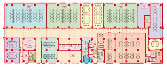 自動設計においては、「教室の形状は7mx9mが多い」「都内の1万平米規模のオフィスビルは貸室の奥行き約14〜16m程度が多い」など、部屋の形状や寸法をAIが学習し、レイアウト案を自動生成する。