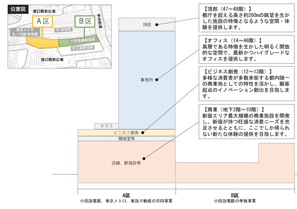 「新宿駅西口地区開発計画」の事業主体は、小田急電鉄・東京メトロ・東急不動産となっています。