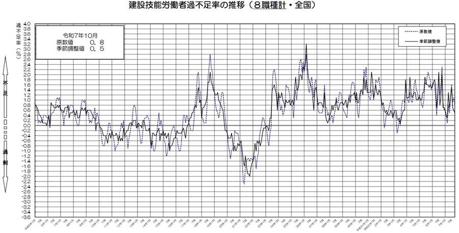 国土交通省リリース,建設労働需給調査結果(令和7年 10 月分調査)について,https://www.mlit.go.jp/report/press/content/001969826.pdf
