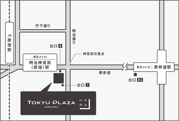 - 千代田線・副都心線「明治神宮前(原宿)」駅 出口4・7 徒歩1分