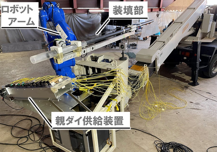 株式会社大林組(本社:東京都港区、社長:佐藤俊美)は、慶應義塾大学ハプティクス研究センター(センター長:大西公平《新川崎先端研究教育連携スクエア特任教授》、野崎貴裕《理工学部准教授》)と共同で、遠隔で力触覚を再現する技術であるリアルハプティクス(以下、リアルハプティクス)(※1)を応用した「自動火薬装填(そうてん)システム(以下、本システム)」に起爆用爆薬(親ダイ(※2))の供給装置を搭載しました。本改良により切羽(きりは)直下(※3)に作業者が入らない状態で、オペレータ室から1名で連続的な装填作業を行うことに成功しました。