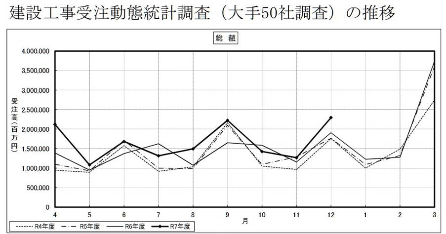 国土交通省リリース,建 設 工 事 受 注 動 態 統 計 調 査 報 告 ( 大 手 50 社 調 査 )( 令 和 7 年 12 月 分 、 令 和 7 年 計 ) に つ い て,https://www.mlit.go.jp/report/press/content/001978331.pdf