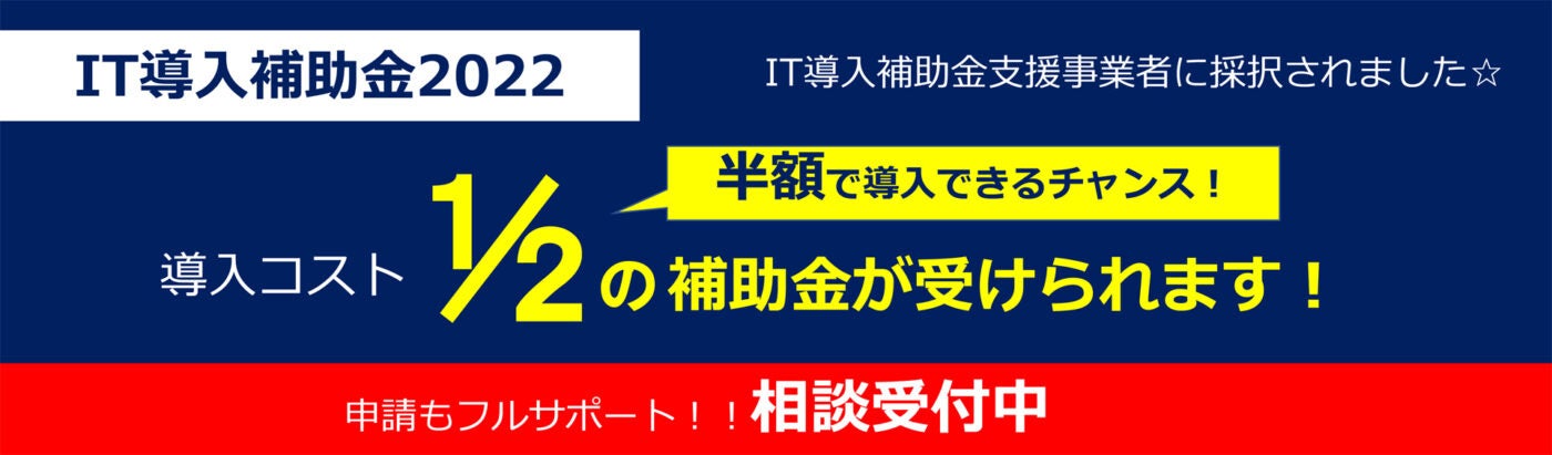 中小企業者等におけるITツール(ソフトウェア、サービス等)の導入費用の補助を通じて、中小企業者等の生産性向上を目的とする事業です。当事業の承認を受けた「IT導入支援事業者」が提供する認定ソフトウェアの導入費用の1/2が補助されます。