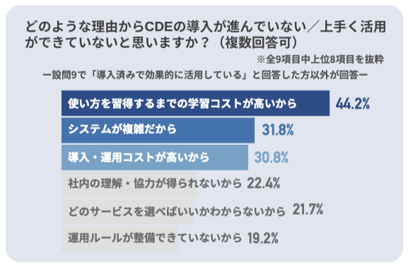 CDE導入企業が約7割に及ぶ一方で4割以上が「効果的な活用が進んでいない」のが現状