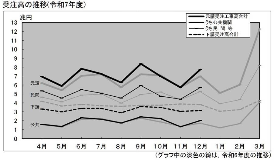 国土交通省リリース,建設工事受注動態統計調査報告(令和 7 年 12 月分及び令和 7 年計分)について,https://www.mlit.go.jp/report/press/content/001980924.pdf