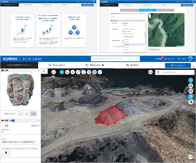 株式会社スカイマティクス(東京都中央区、代表取締役社長:渡邉善太郎)は、この度、ドローン測量・現地管理DXクラウド「くみき」に他社ソフトで生成されたオルソ画像・3D点群データ等を取り込める便利な「インポート機能」が追加されましたので、お知らせいたします。