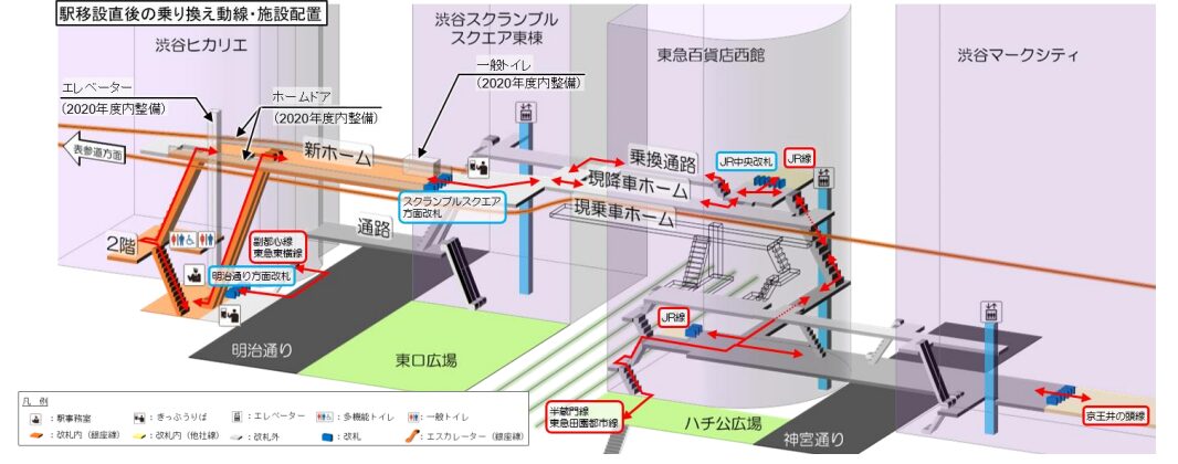 リニューアルにより駅位置が移設されたため、従来の記憶のまま移動すると迷いやすい点には注意が必要です。銀座線改札は明治通り上空の東口側にあり、ハチ公口とは方向が異なります。