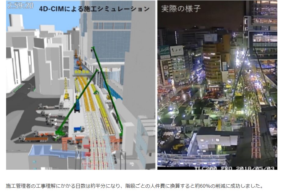 銀座線渋谷駅のプロジェクトでは、3次元モデルを活用するBIM/CIMが積極的に導入されました。具体的には設計段階から施工者の視点を反映した3Dモデルを作成し、関係者間で共有することで事前に施工手順や安全性が検証されています。