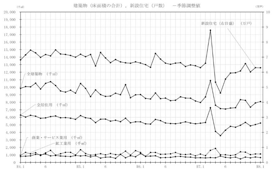 国土交通省リリース,建築着工統計調査報告(令和 8 年 1 月分)について,https://www.mlit.go.jp/report/press/content/kencha801.pdf