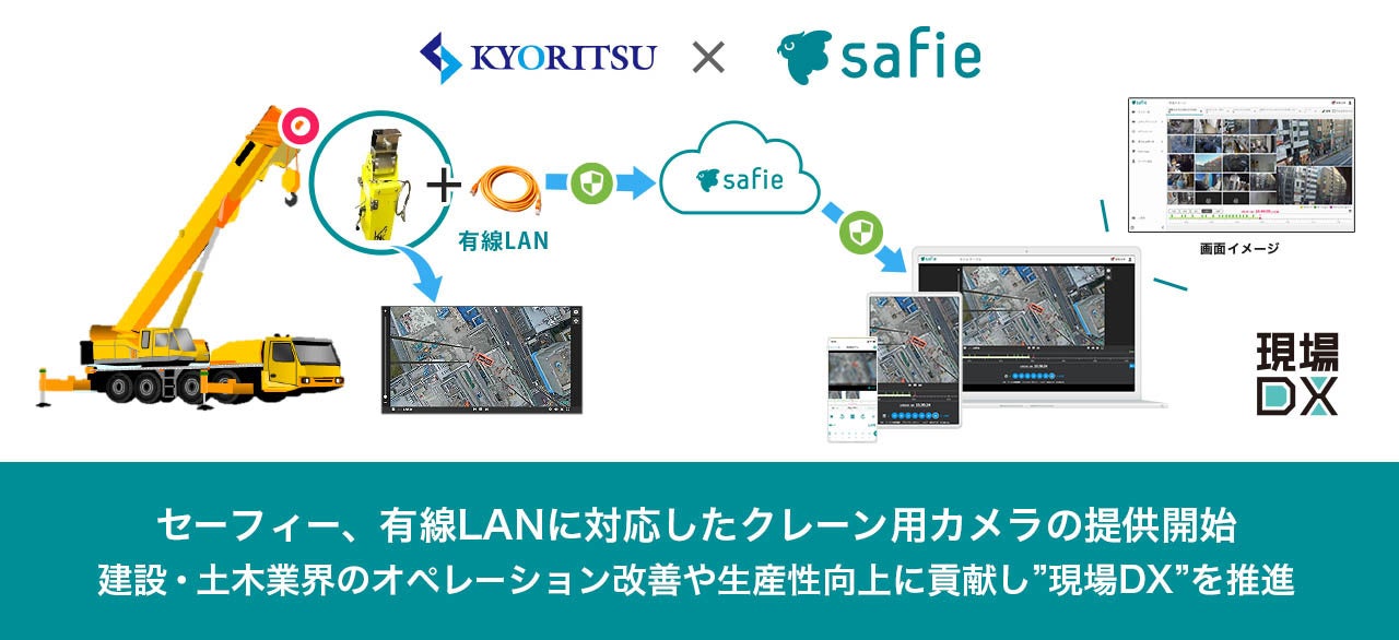 クラウド録画サービスシェアNo.1(※1)のセーフィー株式会社(東京都品川区:代表取締役社長CEO 佐渡島 隆平、以下「セーフィー」)は、クレーン用カメラ製造・販売のパイオニアである協立電子工業株式会社(大阪府豊中市:代表取締役社長 明石 学、以下「協立電子工業」)と連携し、高層階の建設・土木現場でリアルタイムな遠隔モニタリングを可能とする有線LANに対応したクレーン用吊荷監視カメラを、5月10日(火)より提供開始します。