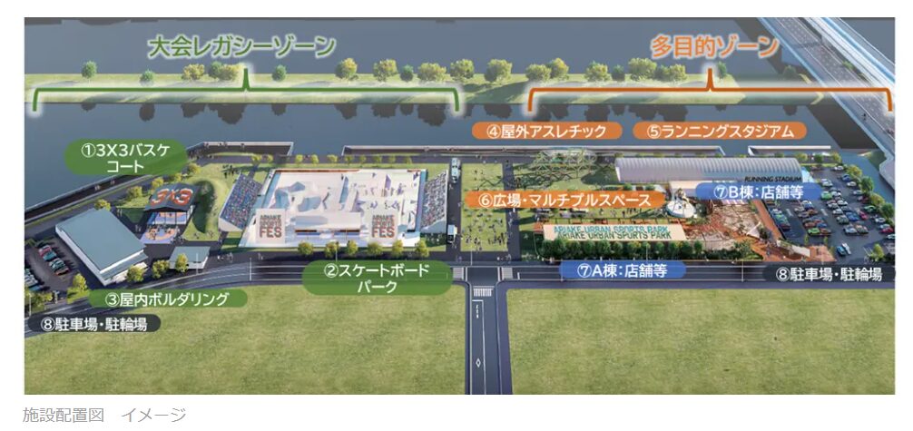 ここでは、有明アーバンスポーツパークの「多目的ゾーン(ビレッジパーク)」に含まれる施設をご紹介します。