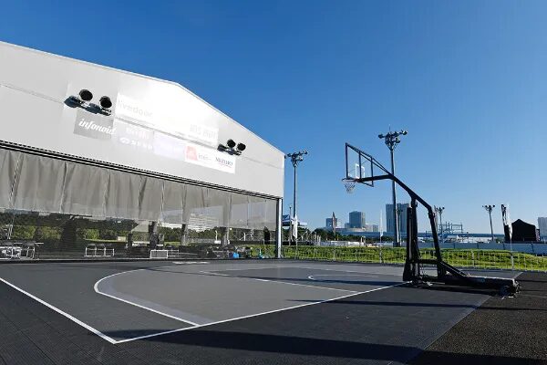 3×3バスケットボール(3人制バスケットボール)専用コートです。雨天でも利用可能な屋根付きコート1面と、屋根なしコート1面の2面のコートが設置されています。