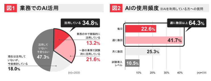 AI活用: 「積極的に活用」「試験的活用」34.8%