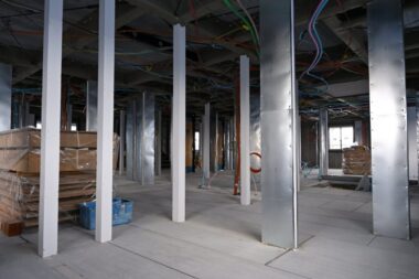 内装工事で使うスタッドは、間仕切り壁や天井下地を構成する部材です。オフィスの会議室、店舗の区画壁、病院の診察室、学校の教室、集合住宅の専有部など、幅広い建物で使われます。