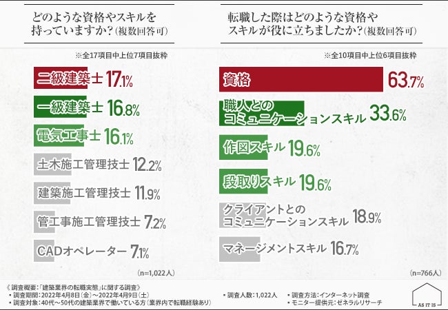 株式会社AS IT IS(代表取締役:弓削 誠)は、40代~50代の建築業界で働いている方(業界内で転職経験あり)を対象に、「建築業界の転職実態」に関する調査を実施しました。