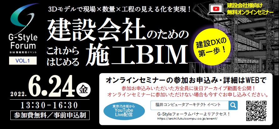 GLOOBE 2022 R1リリースを記念して、施工BIMの最新動向やGLOOBE最新バージョンをご紹介させていただくBIM情報発信イベント「GーStyleフォーラム」を開催いたします。