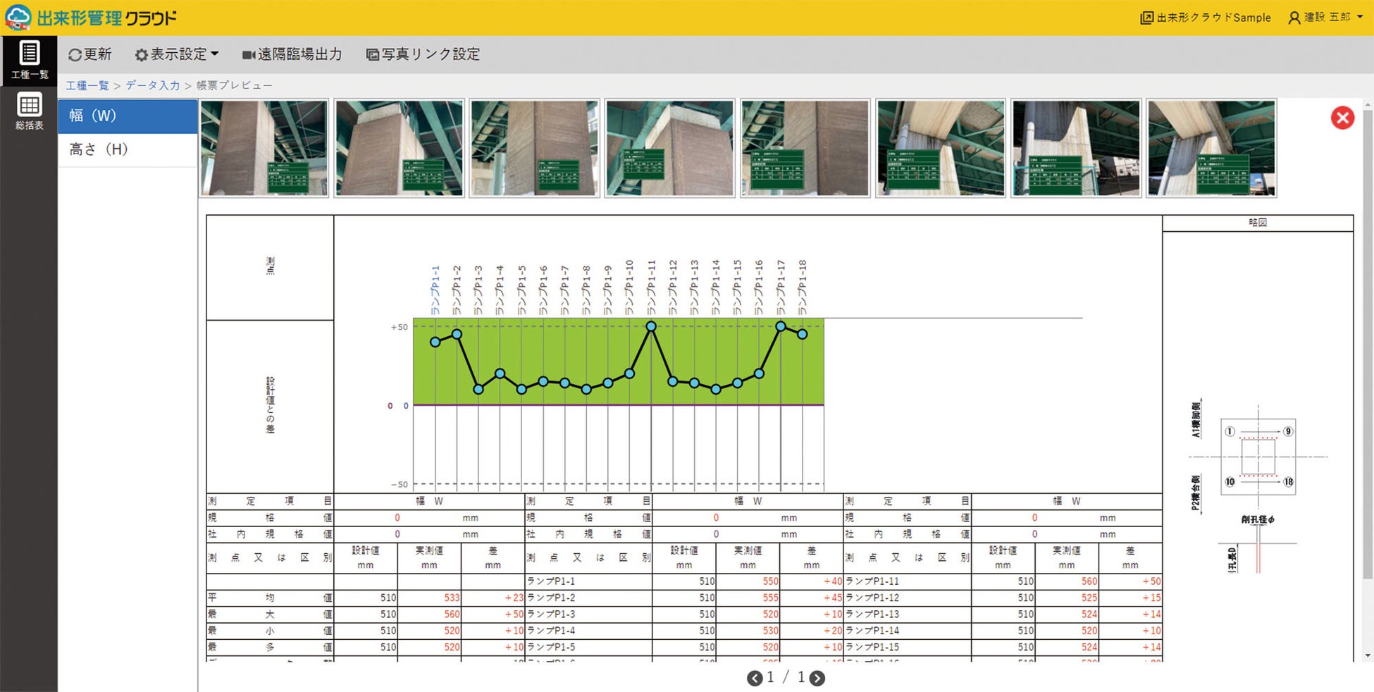 測点ごとの出来形管理写真を確認でき、検査の高度化が実現します。