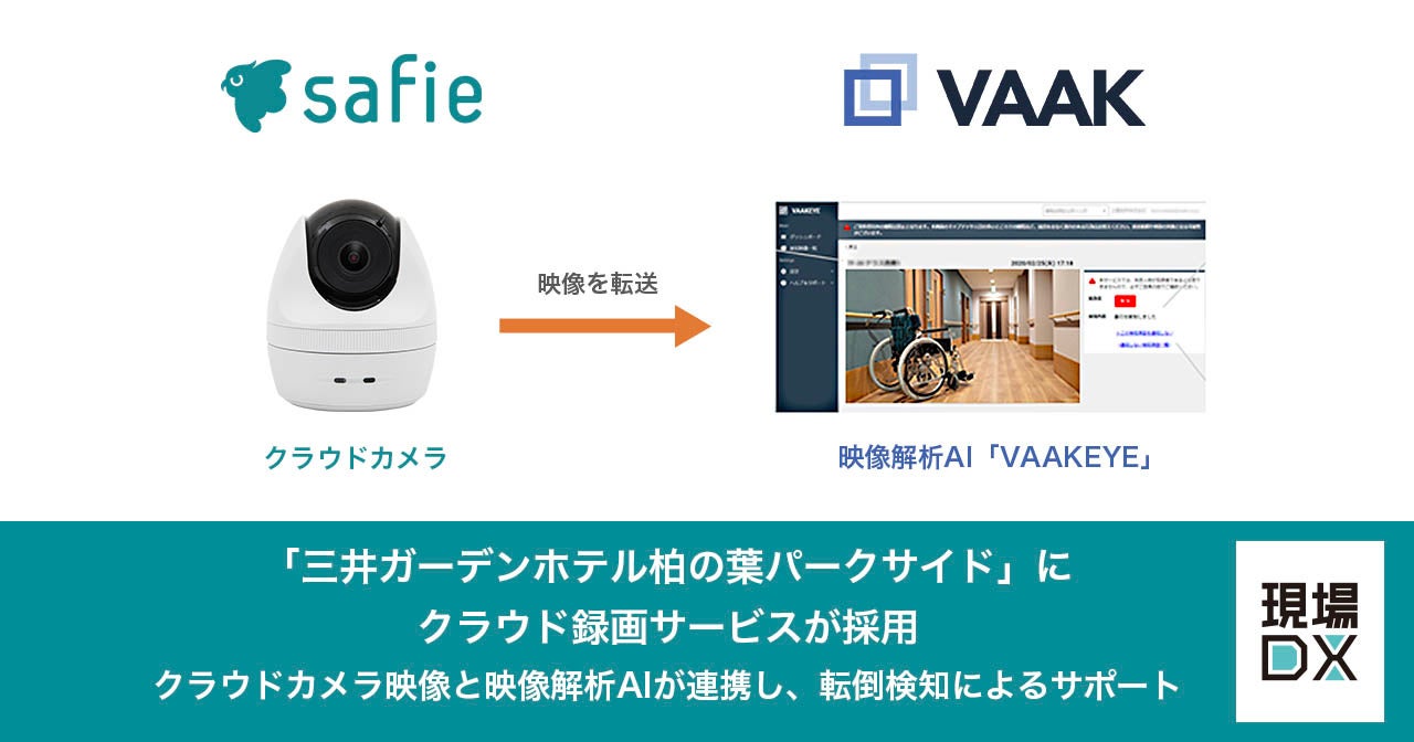 クラウド録画サービスシェアNo.1(*1)のセーフィー株式会社(東京都品川区:代表取締役社長CEO 佐渡島 隆平、以下「セーフィー」)は、この度、三井不動産株式会社(以下、三井不動産)が2022年7月1日に開業する「三井ガーデンホテル柏の葉パークサイド」にて、クラウドカメラ映像による転倒防止ソリューションが採用されましたことをお知らせします。本ソリューションは、クラウド録画サービス「Safie(セーフィー)」と株式会社VAAKが提供する映像解析AI「VAAKEYE」が連携したものとなります。