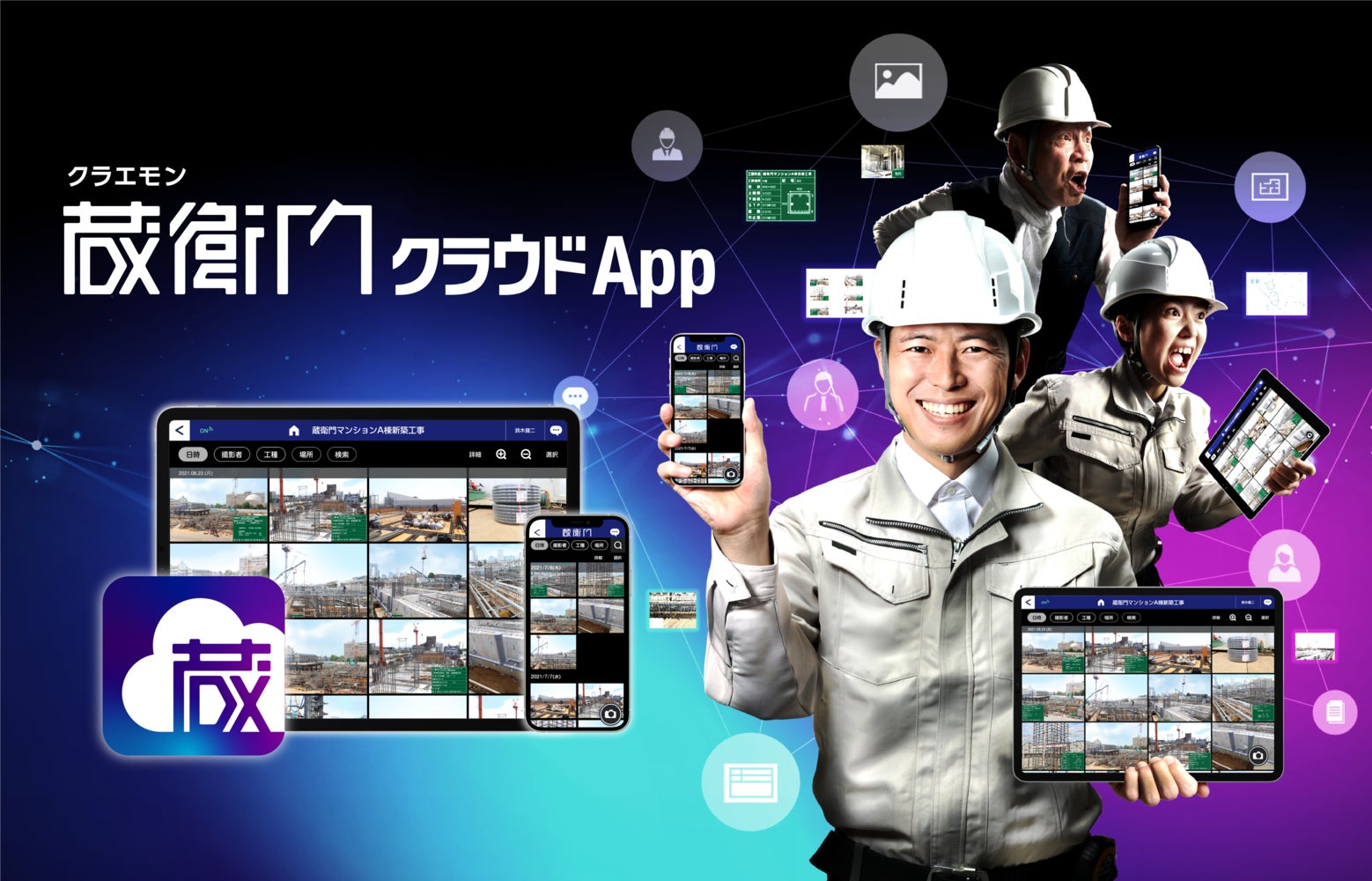 その25年間で培った画像処理技術を元に2021年8月にリリースしたのが、現場共有アプリ『蔵衛門クラウド』です。“工事写真”を核に施工管理における建設DXのあり方を提案し、“現場全体”の生産性向上を支援しています。