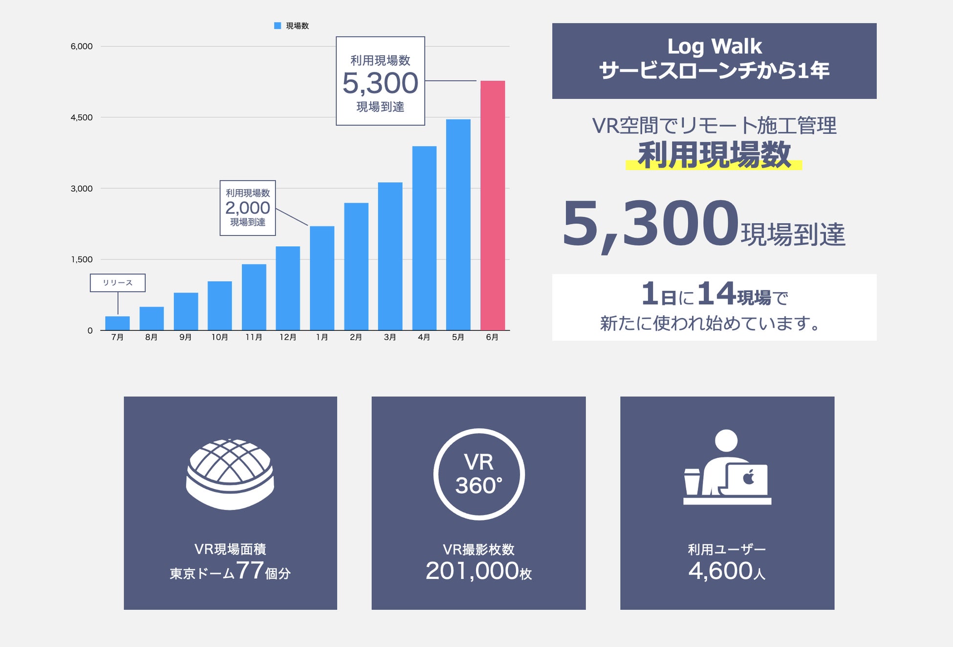 リモート現場可視化アプリlog build、VR現場空間「Log Walk」が5,300現場到達