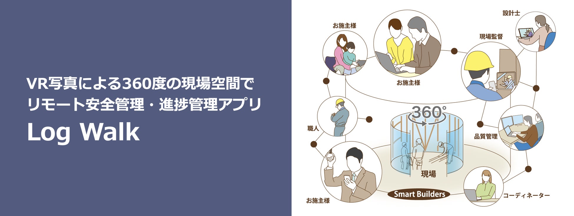 Log Walkは、VR写真によるリモート現場可視化アプリで「まるで建築現場にいるような体験」が可能です。