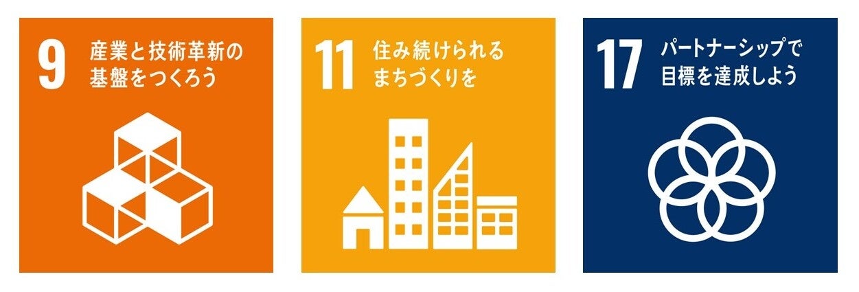 今回の取り組みは、SDGsのゴールのうち、特に9番、11番、17番に貢献するものと考えています。