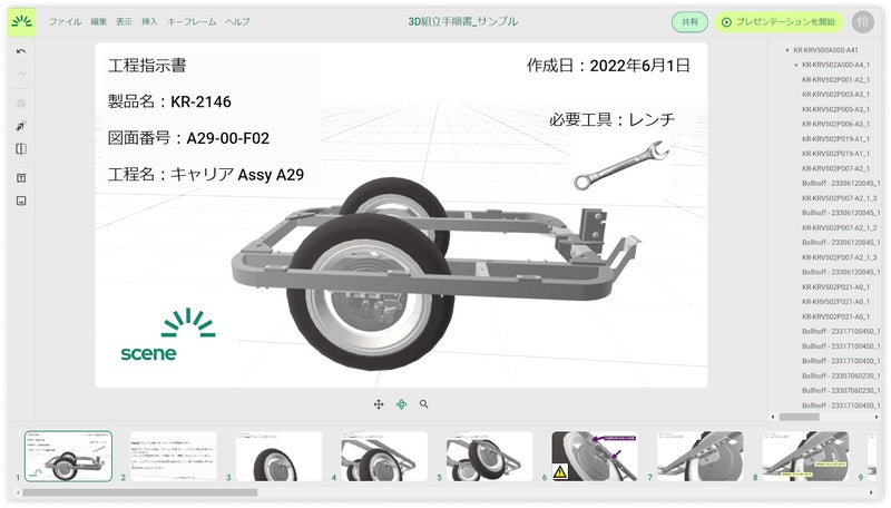 Sceneは製造に必要な組立手順書の作成を効率化するDXツールです。