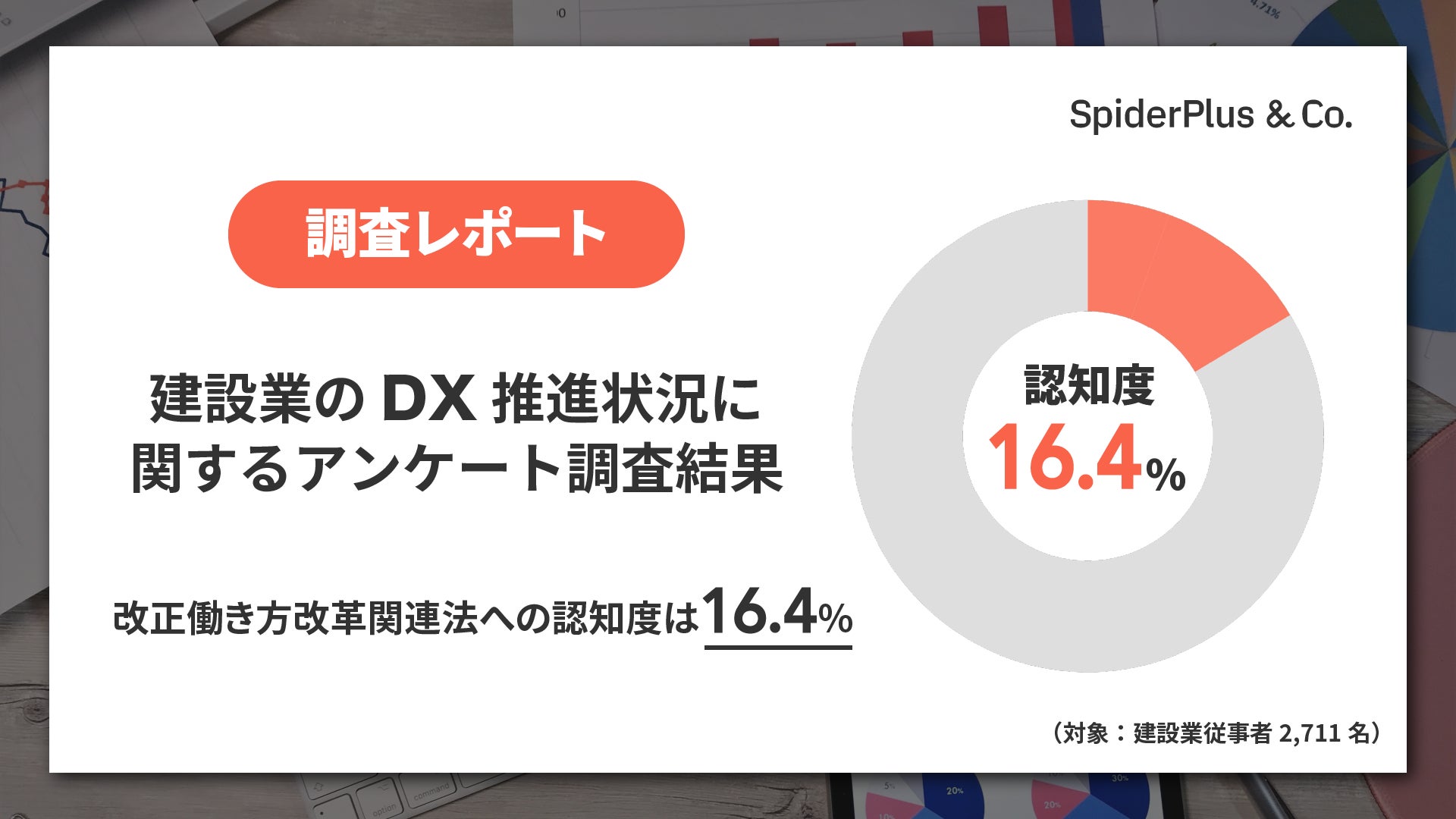 スパイダープラス、建築業の働き方改革関連法認知に関する調査実施|認知度は16.4%