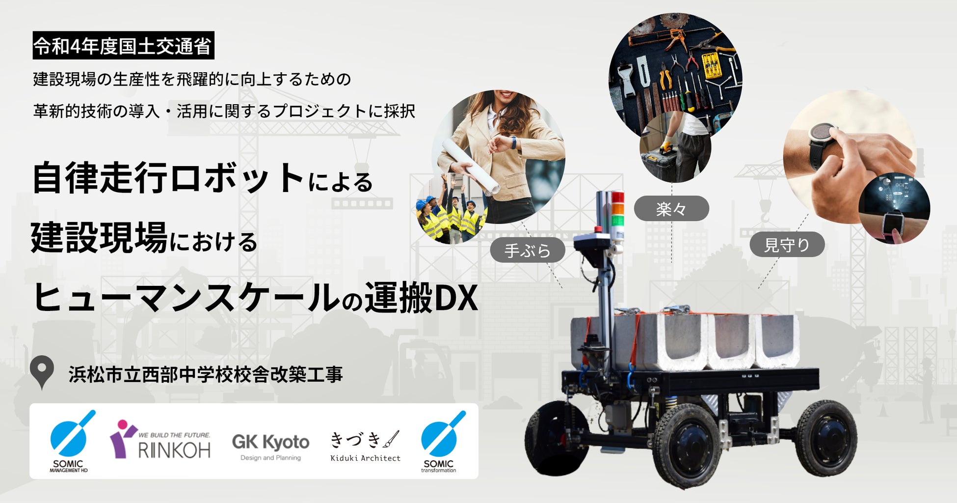 株式会社ソミックマネージメントホールディングス(以下SMHD)は、地元浜松の総合建設業者の株式会社林工組(以下林工組)・総合デザイン事務所の株式会社ジイケイ京都(以下GK京都)・新規事業開発支援のきづきアーキテクト株式会社(以下きづきアーキテクト)・建設現場向けの作業支援ロボット「SUPPOT」レンタルサービス(https://suppot.jp/)を展開する株式会社ソミックトランスフォーメーション(以下ソミックトランスフォーメーション)と共同開発する「建設又は土木工事における現場の働き易さと施工の労働生産性を向上する運搬DX技術」が、国土交通省の「建設現場の生産性を飛躍的に向上するための革新的技術の導入・活用に関するプロジェクト」に採択されたことを発表します。